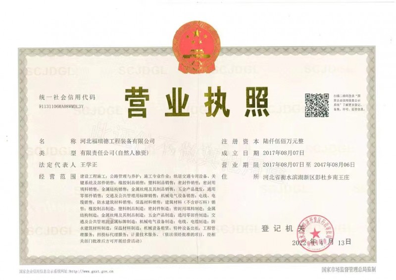 | 發(fā)證機(jī)構(gòu): | 衡水濱湖經(jīng)濟(jì)開發(fā)區(qū)行政審批局 | 發(fā)證時(shí)間 : | 2022-04-13 |
