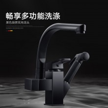 黑色廚房菜盆抽拉式水龍頭 多功能增壓噴槍機(jī)器人冷熱混水龍頭